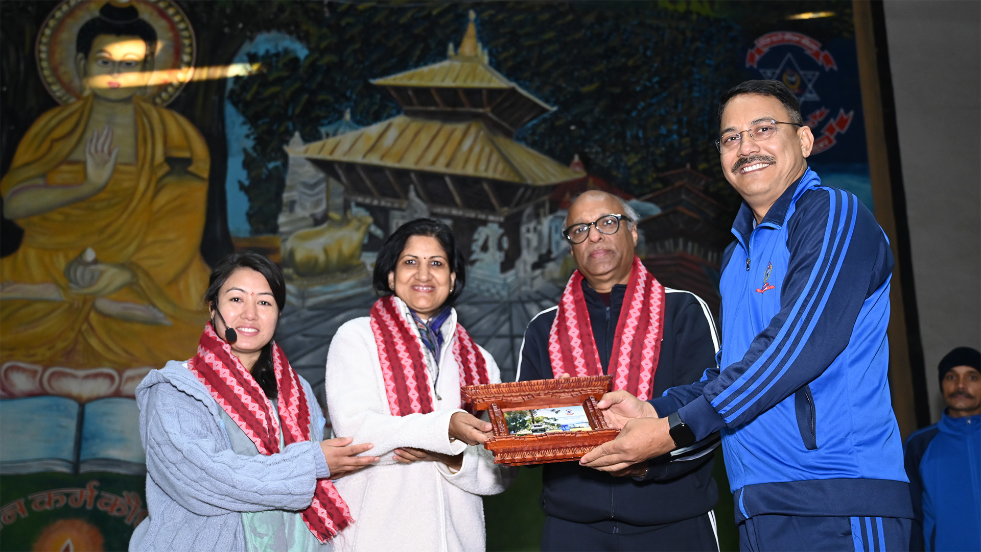 आज मिति २०८२/०९/०३ गते विश्व ध्यान दिवसको अवसरमा राष्ट्रिय प्रहरी प्रशिक्षण प्रतिष्ठानका कार्यकारी निर्देशक प्रहरी अतिरिक्त महानिरीक्षक शिद्धी बिक्रम शाहज्यूको प्रमुख आतिथ्यतामा पूर्व संविधान सभा एवम् प्रतिनिधी सभा सदस्य तथा “The Art of Living” योग संस्थाका सल्लाहकार माननीय बिमल केडिया The Art of Living faculty का योग तथा ध्यान प्रशिक्षकद्वय सन्तोष केडिया र सृजना श्रेष्ठको उपस्थितिमा आयोजना गरिएको “योग तथा ध्यान” शिविर २०८२ को अभ्यास सम्पन्न । उक्त कार्यक्रममा यस प्रतिष्ठानका निर्देशकज्यू, सह-निर्देशक, उप-निर्देशक सहित २०० जना प्रशिक्षक तथा प्रशिक्षार्थीहरुको सहभागिता रहेको थियो ।
