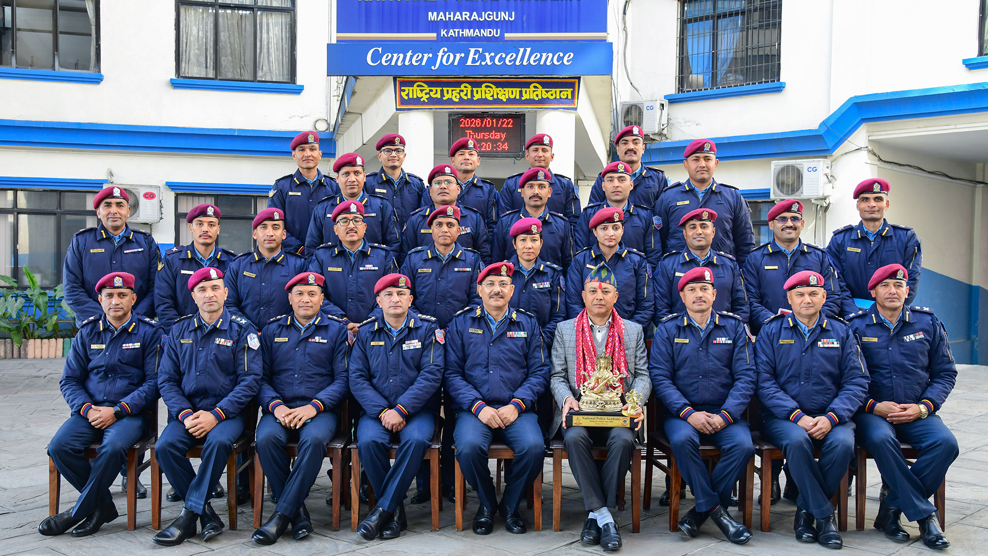 नेपाल प्रहरी प्रधान कार्यालय, कर्मचारी प्रशासन शाखाको च.नं.४८६० मिति २०८२/१०/०४ गतेको पत्रले राष्ट्रिय प्रहरी प्रशिक्षण प्रतिष्ठान, महाराजगञ्जबाट गण्डकी प्रदेश प्रहरी कार्यालय पोखरा, कास्कीमा सरुवा भई जान लाग्नु भएका प्रहरी नायव महानिरीक्षक श्री दिपेन्द्र जि.सी.ज्यूलाई आज मिति २०८२/१०/०८ गते यस प्रतिष्ठानका कार्यकारी निर्देशक प्रहरी अतिरिक्त महानिरीक्षक श्री शिद्धी बिक्रम शाहज्यूले मायाको चिनो प्रदान गरी विदाई गर्नु भयो ।